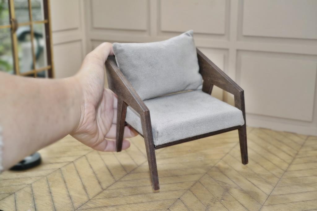 The PIKO armchair combines minimalist design with subtle elegance. Its clean, geometric form and carefully balanced proportions make it a perfect choice for modern and Scandinavian-style miniature interiors.
